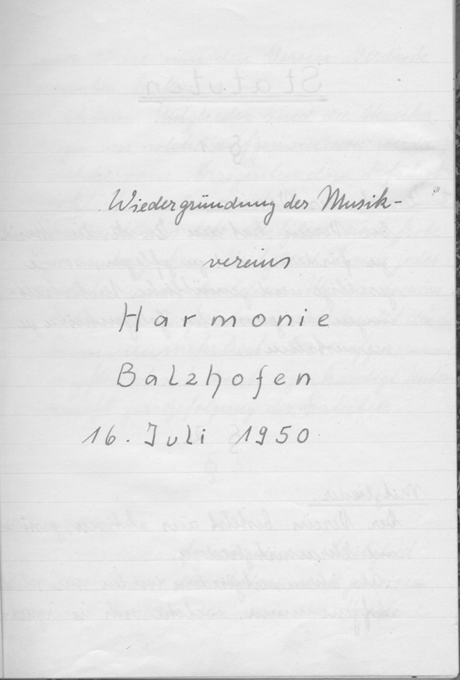 Am 16. Juli 1950 fand im Gasthaus „Zur Linde“ in Balzhofen die Versammlung zur Wiedergründung des Musikvereins Harmonie Balzhofen statt. Dabei wurde Emil Beier erneut erster Vorsitzender, zweiter Vorsitzender Otto Maurath, Kassier und Schriftführer Arnold Schultheiß und Wilhelm Lienhart Dirigent. Der Verein hatte bei der Wiedergründung 20 aktive und 102 passive Mitglieder.