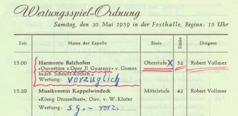 In der Tat, dieser Aufstieg wurde genommen. Beweis für die guten Leistungen der Kapelle unter Dirigent Vollmer sind die Teilnahme und die errungenen Erfolge an Wertungsspielen in den folgenden Jahren, so: