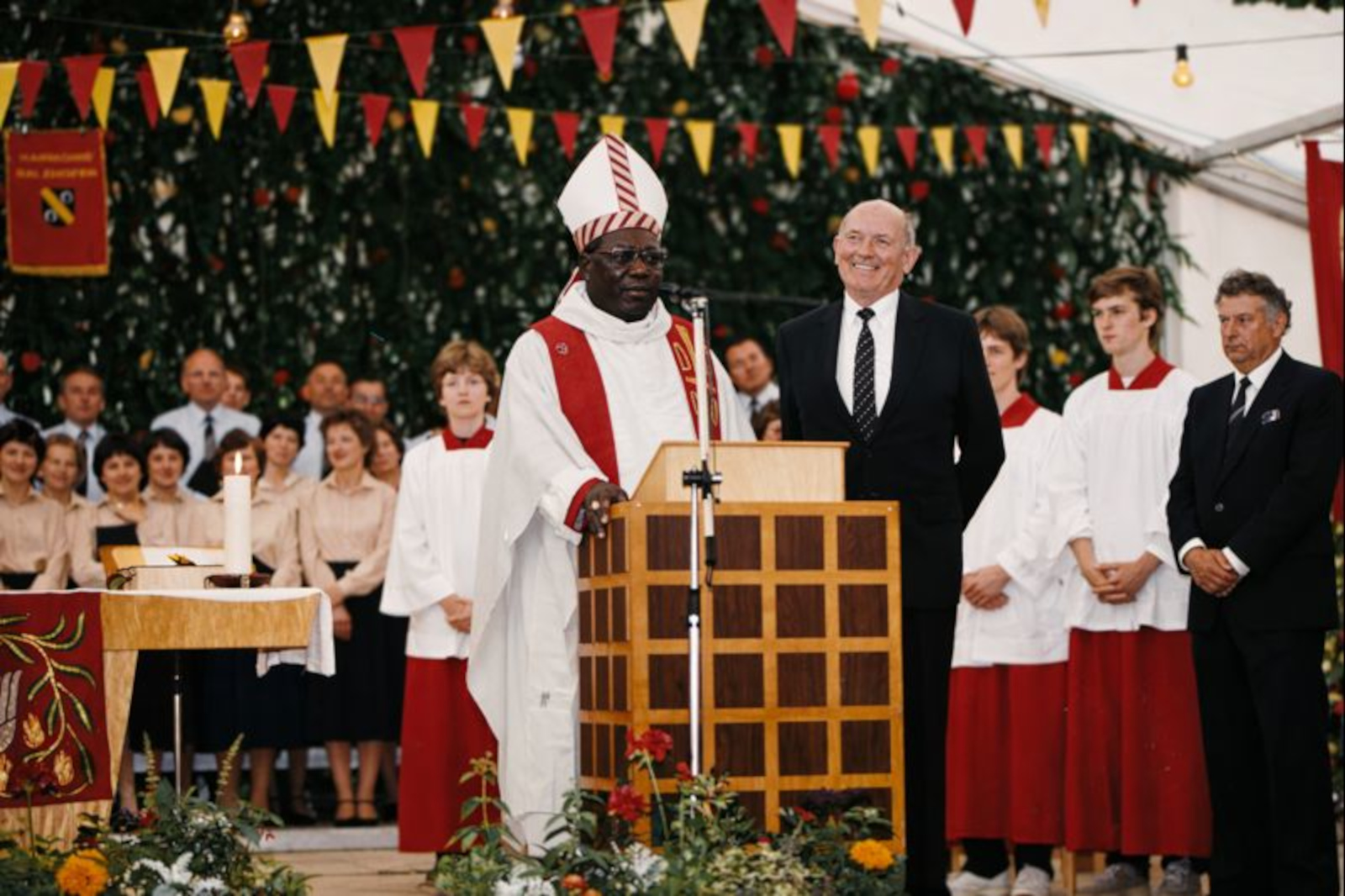 1986 konzelebrierte sogar ein Bischof, Erzbischof Dosseh aus Togo/Afrika, der sich zu einem Besuch bei der Pfarrgemeinde Vimbuch aufhielt, die heilige Messe. Dieser Gottesdienst wurde zu einem großen Erlebnis für die Teilnehmer. Ebenso umgekehrt das Musikfest für den schwarzen Erzbischof, der sich unter den Menschenmassen im Festzelt sichtlich wohl fühlte.